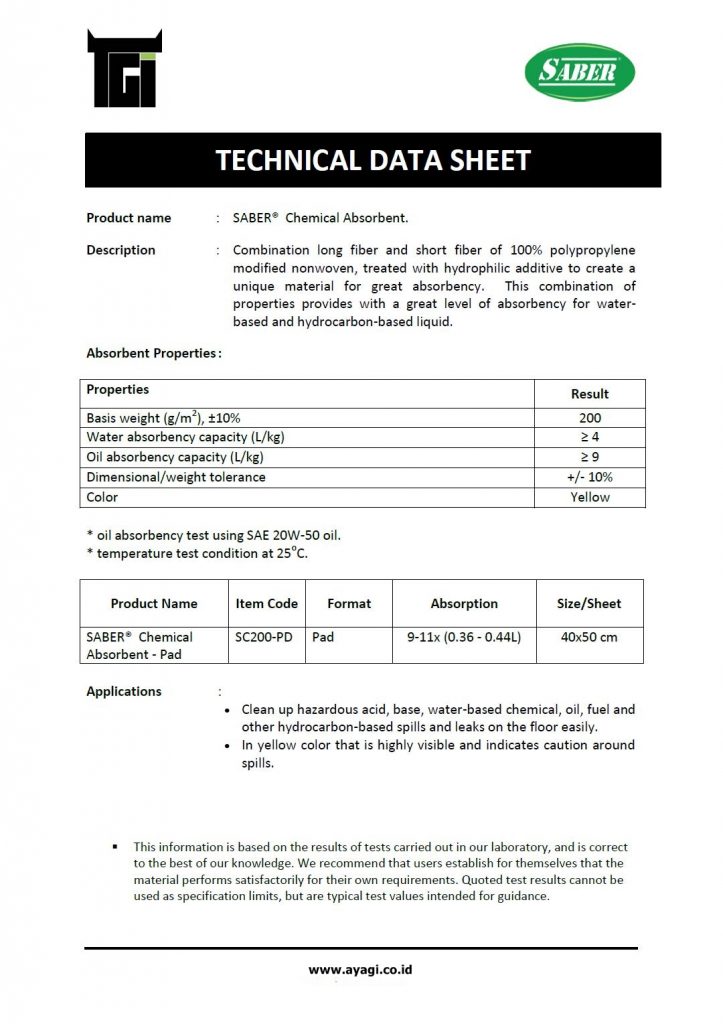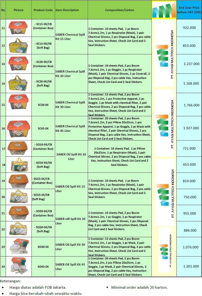 PRODUK : SABER*50 HEAVY DUTY WIPES, SABER*70 MULTI PURPOSE WIPES, OIL ABSORBENT SO200-PD, OIL ABSORBENT SMALL BOOM SO650SB, OIL ABSORBENT LARGE BOOM SO1500SB, CHEMICAL ABSORBENT SC200-PD, AND OTHERS